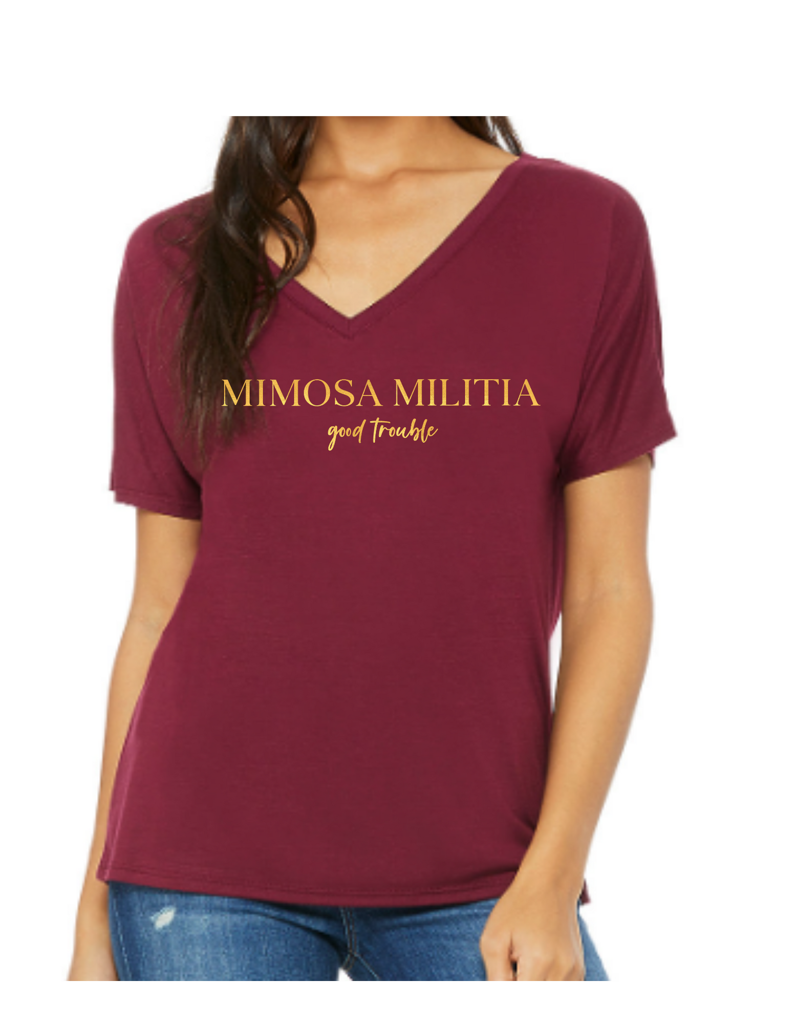 Features a modern feminine fit, relaxed V-neck, short sleeves and superior Airlume combed and ring-spun cotton.
